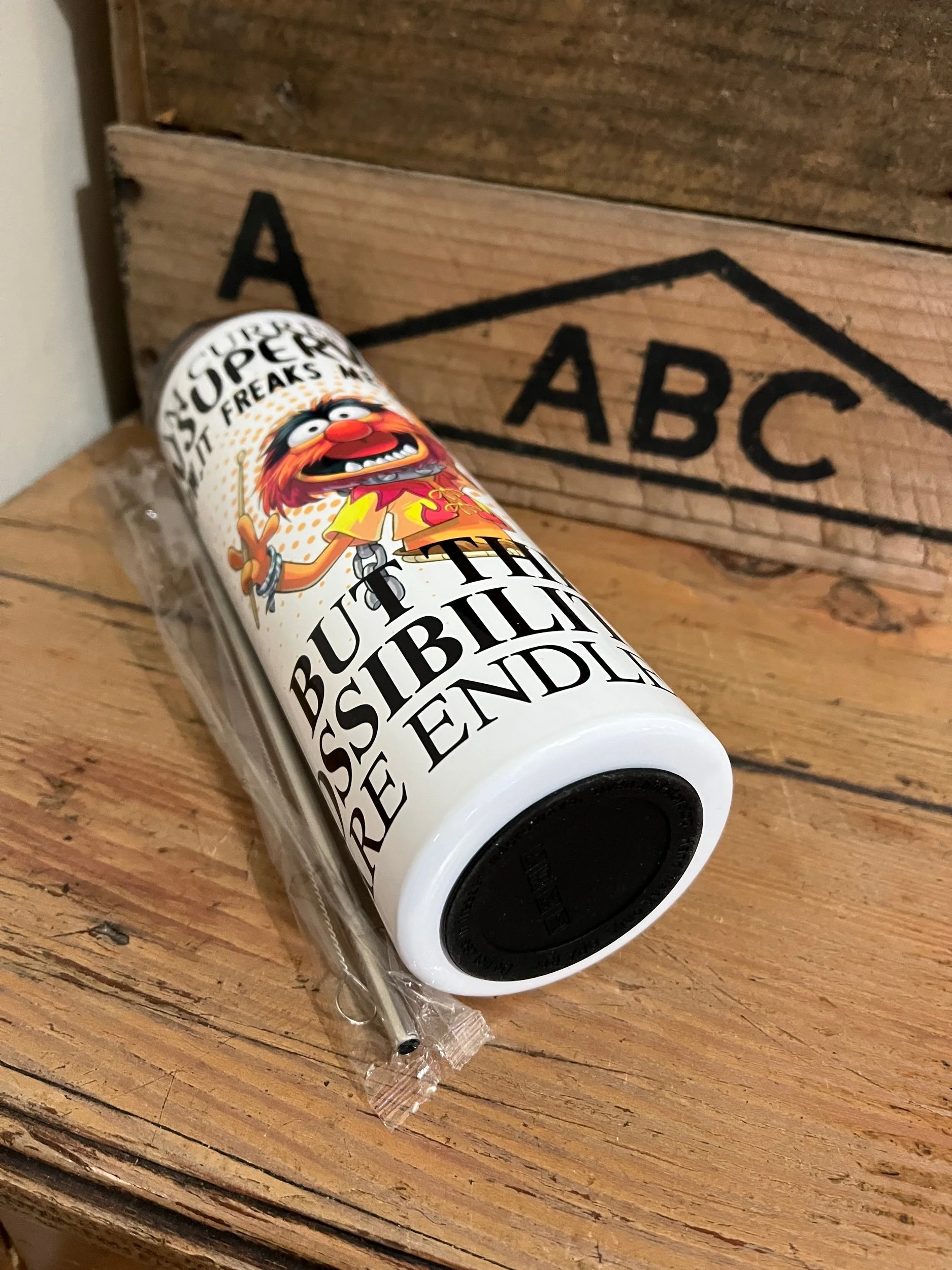 Show off your fun side with this Animal 20oz thermal cup from Purple Sage Mugs. Featuring the text “I am currently unsupervised. I know, it freaks me out too. But the possibilities are endless.” and a bright, energetic design inspired by a well-known drummer, this cup is sure to make you smile.